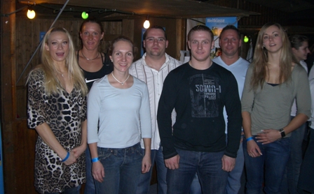 Team Peking Athleten bei der WM-Party in EppelheimRund 4000 Zuschauer sahen in der Rhein-Neckar -Halle, beim "Public Viewing", auf einer 27qm großen Leinwand das Eröffnungsspiel der deutschen Nationalmannschaft gegen Brasilien. Zu dieser Veranstaltung versammelten sich auch die Top-Sportler der Region, die Ihre Leidenschaft für den Sport dokumentierten. So führte Moderator Thomas Koschwitz unter anderem mit Hockey Olympiasiegerin Mandy Haase, den Athletinnen des Team Peking 2008 der Metropolregion Kirsten Bolm und Nastja Ryzih (beide Leichtathletik) sowie VCO-Kapitän Sandra Gutsche (Volleyball) eine kleine Talkrunde. Weitere Spitzensportler wie die Gewichtheber Jürgen Spieß, Jörg Mazur, Andre Rohde, Top-Kanutin Nicole Reinhardt und Handball-Star Uwe Gensheimer waren vom OSP Rhein-Neckar präsent und freuten sich über den ersten Sieg der DHB-Mannschaft. |  |