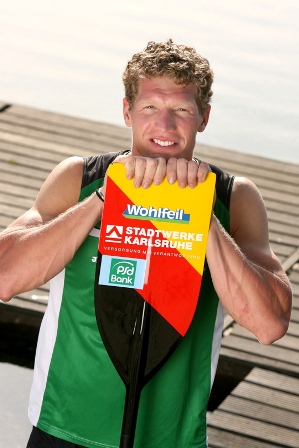 Was wir alleine nicht schaffen, das schaffen wir dann zusammen!Stefan Holtz paddelt seit 2001 für die Rheinbrüder Karlsruhe/BSP Mannheim-Karlsruhe. Er kam damals der Liebe wegen nach Baden-Württemberg. Für die Rheinbrüder ist er seither etwas ganz besonderes. Denn er ist der einzige Canadierfahrer im Rheinhafen. Dies war für alle am Anfang ein neues Experiment. Detlef Hofmann der Cheftrainer der Rheinbrüder hatte bis dahin noch keine Erfahrungen im Canadierbereich. Es stellte sich jedoch heraus, dass die beiden viel voneinander Lernen konnten. So gab Holtz dem Kajaktrainer Hofmann Einblicke in die Canadierwelt, der wiederum profitiert seither von der Trainingsart am Rheinhafen. Stefan Holtz hat schon oft zugegeben, dass ihm die Jahre zuvor jemand gefehlt hat, der ihn immer wieder aufs Neue zu den Trainingseinheiten motivieren konnte. In Detlef Hofmann hat er den richtigen gefunden, der auch mal zu einer härteren Gangart übergehen kann. „In den ersten Jahren habe ich das wirklich gebraucht, nun weiß ich um was es geht und trainiere härter als zuvor!“ resümiert der 2 Meter Mann. Für Detlef Hofmann war es leichter als gedacht, da Holtz „eine sehr gute Technik fährt“. Stefan Holtz muss jedoch nicht alleine sein Training bestreiten. In den Krafteinheiten an Land, trainiert er mit der Trainingsgruppe um Arnd und Björn Goldschmidt. Auf dem Wasser kommt ein Canadierfahrer, der mit einem Stechpaddel auskommen muss, jedoch nicht den Kajak-Herren hinterher. Hier fährt Stefan Holtz dann die Einheiten mit der Damengruppe um Judith Hörmann und Maren Knebel. |  |