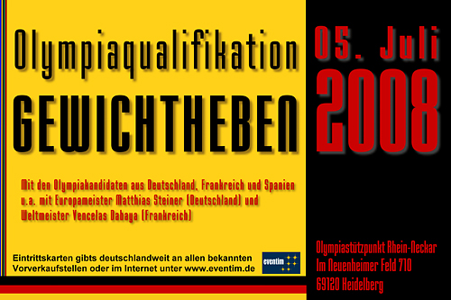 Olympiaqualifikation der Gewichtheber in HeidelbergGEWICHTHEBEN | 30. Juni 2008 | -39 Tage